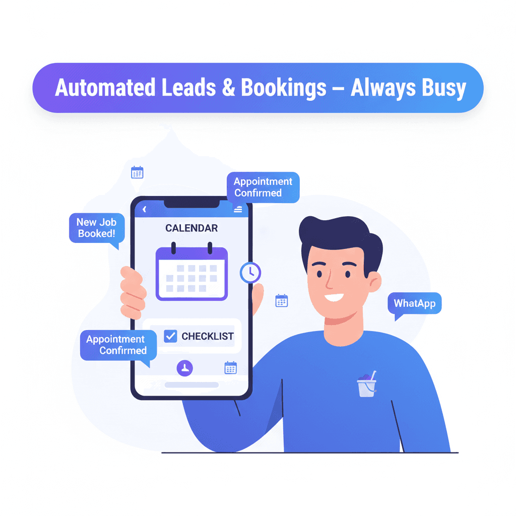 ''Automated lead capture, instant follow-ups, and smart booking flows help cleaning business generate more leads and close customers faster''